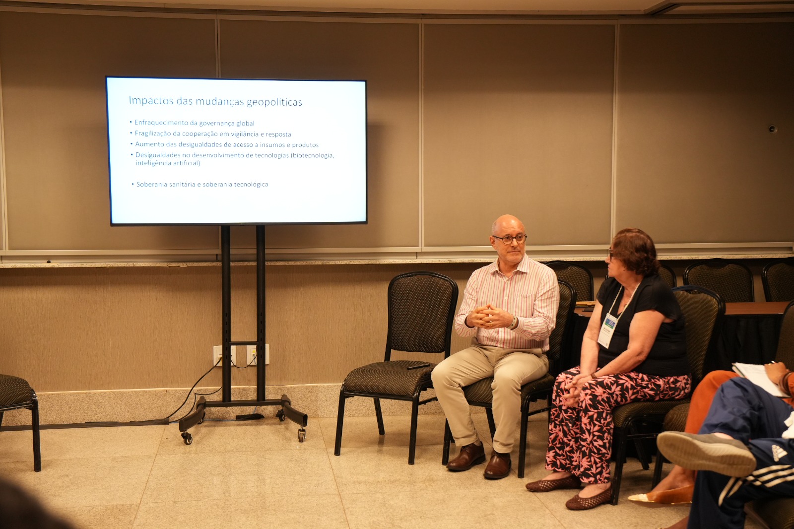 Ele relacionou esse processo ao setor da saúde, marcado pela presença de oligopólios e fundos de investimento, um dos segmentos mais importantes da economia e concentrado nas mãos de um grupo reduzido de investidores. Em seguida, tratou da reconfiguração geopolítica, apontando o enfraquecimento do sistema multilateral, a fragilidade da cooperação internacional em vigilância e resposta e o aumento das desigualdades de acesso a insumos e tecnologias, com impactos diretos para a soberania sanitária e tecnológica.