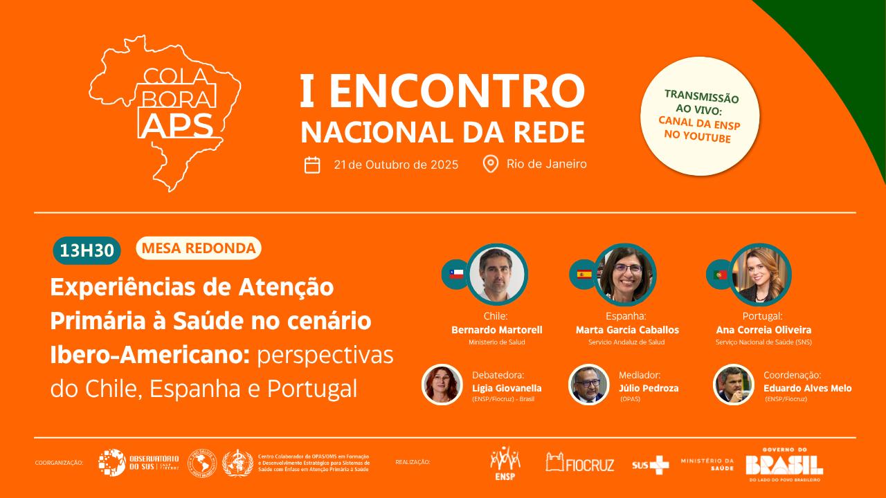 A mesa reunirá Bernardo Martorell, do Ministério da Saúde do Chile; Marta García Caballos, do Servicio Andaluz de Salud, na Espanha; e Ana Correia Oliveira, do Serviço Nacional de Saúde (SNS) de Portugal. A debatedora será Lígia Giovanella (ENSP/Fiocruz), e a moderação ficará a cargo de Júlio Pedroza (OPAS). A atividade será coordenada por Eduardo Melo (ENSP/Fiocruz). O encontro oferecerá um espaço de diálogo e troca de experiências, promovendo o contato com referências internacionais e experiências inspiradoras.